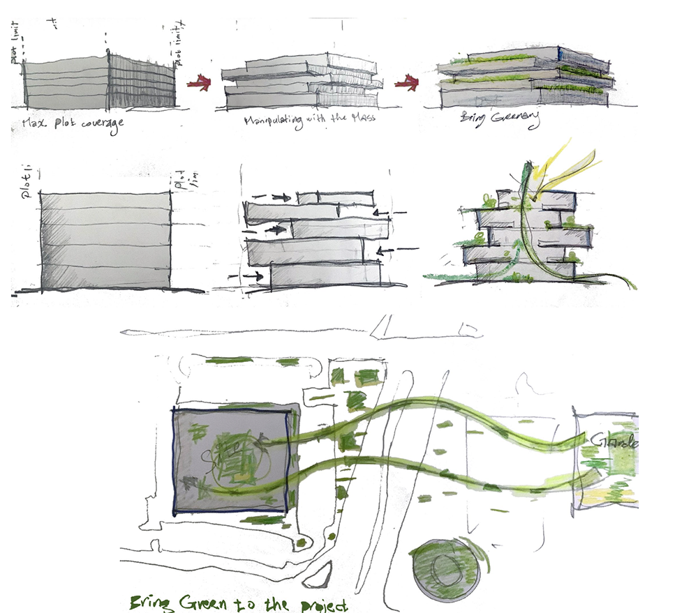 An essential challenge that the site proposed was to plan the building efficiently while achieving the program requirements. On the one hand in order to gain a unique interactive shopping center experi- ence and on the other hand in order to create flex- ible spaces that promote a lifelong etertaining ex- perience. The environment played a significant role in the design of the shopping center where it was integrated through interactive skin, atriums, inside outside and in shaping the spaces weaved within the building envelop and spread to the surrounding.
